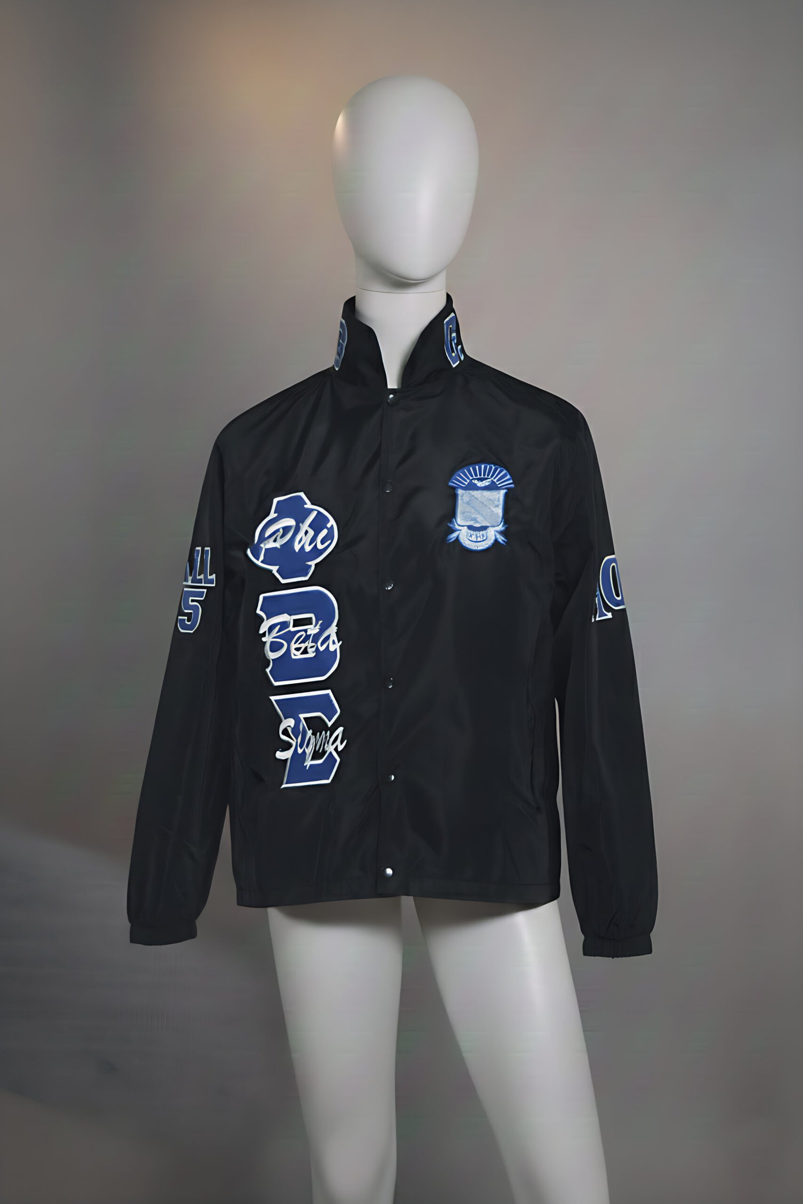 As a proud offering from D9 Greek Wear, this Crossing Jacket is a testament to the distinguished legacy and brotherhood of Phi Beta Sigma Fraternity, Inc. Designed for quality, durability, and a clean, sharp look, it is the perfect piece for crossing, chapter events, and everyday fraternity pride.