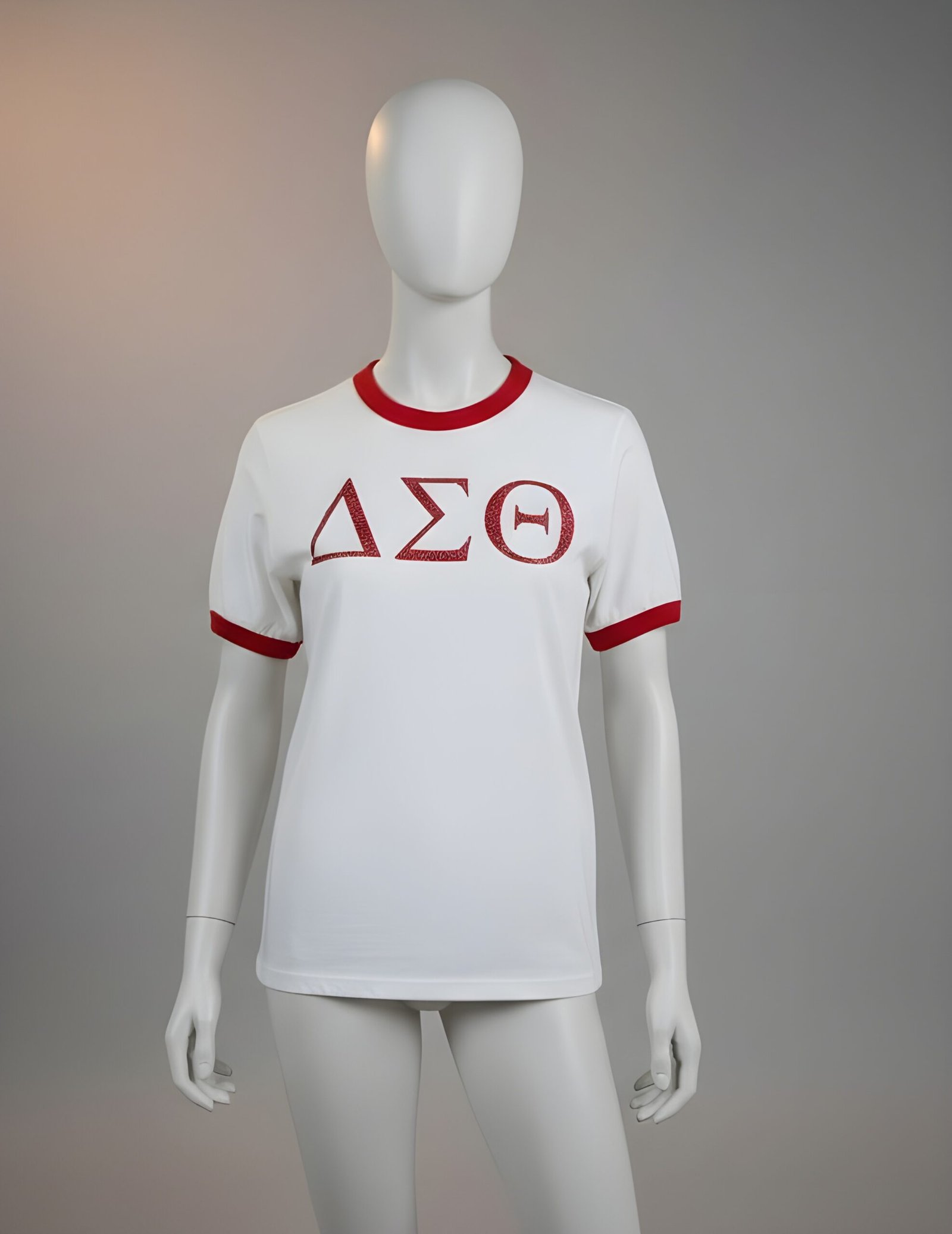 • Main Identifiers ($\Delta\Sigma\Theta$): The Greek letters for Delta Sigma Theta are centered prominently on the chest in a bold, eye-catching format.