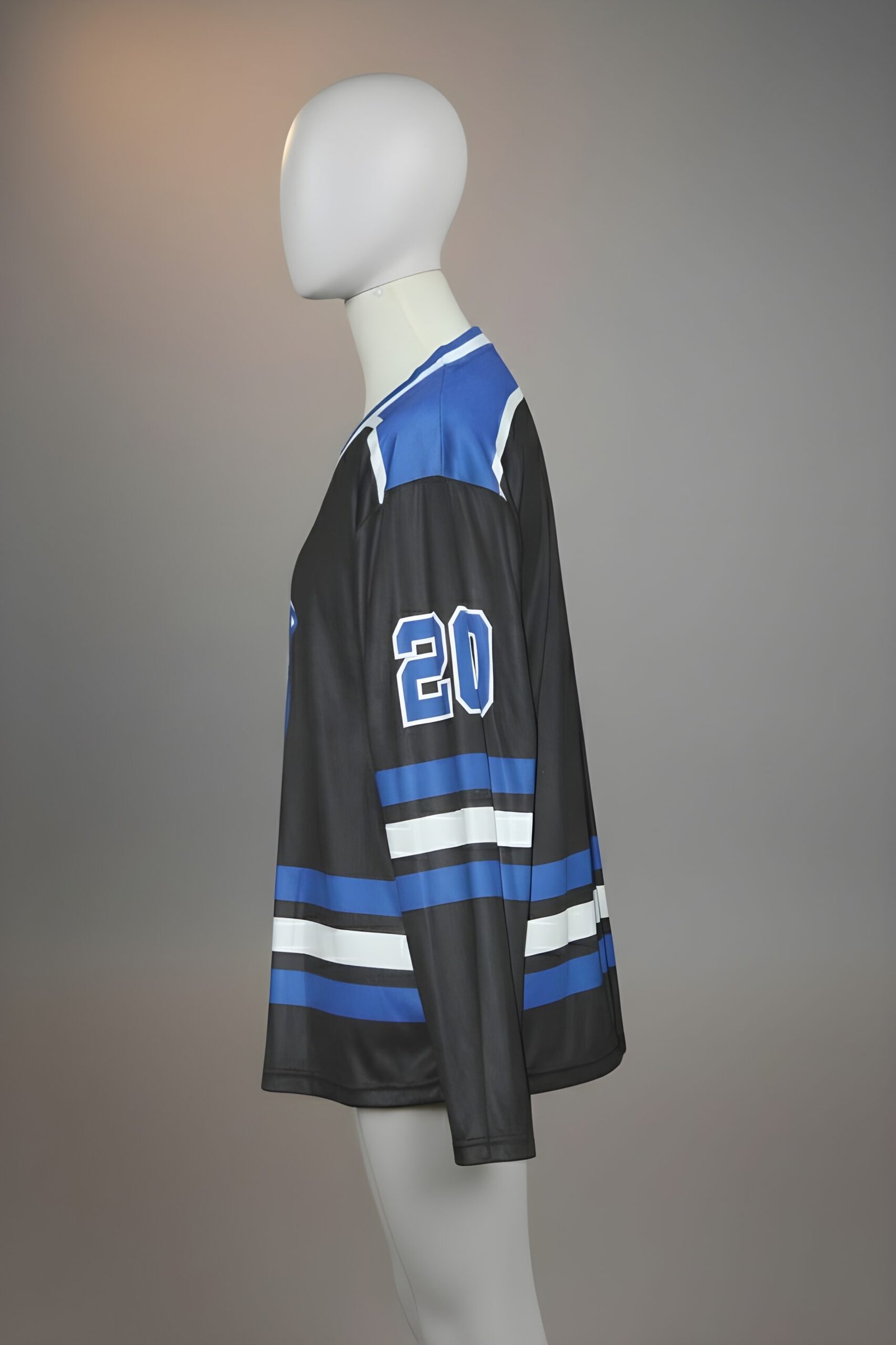 Design: A traditional ice hockey silhouette with a reinforced V-neck collar and a relaxed, oversized fit for layering and comfort.